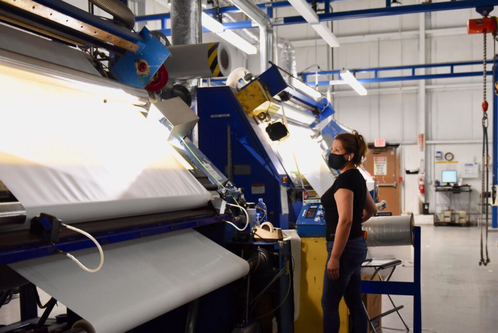 “Customers may apply adhesives to [a fabric], or print on it, or they can do some performance testing that we might not be able to do,” Ayala explains. “Then we can tweak the properties of the fabric much faster, and with less expense, than we would by trying to do it on the main production line. We have an engineer whose job it is to take the fabric from the laboratory to the plant and work with the customer to get it produced to the right specifications.”