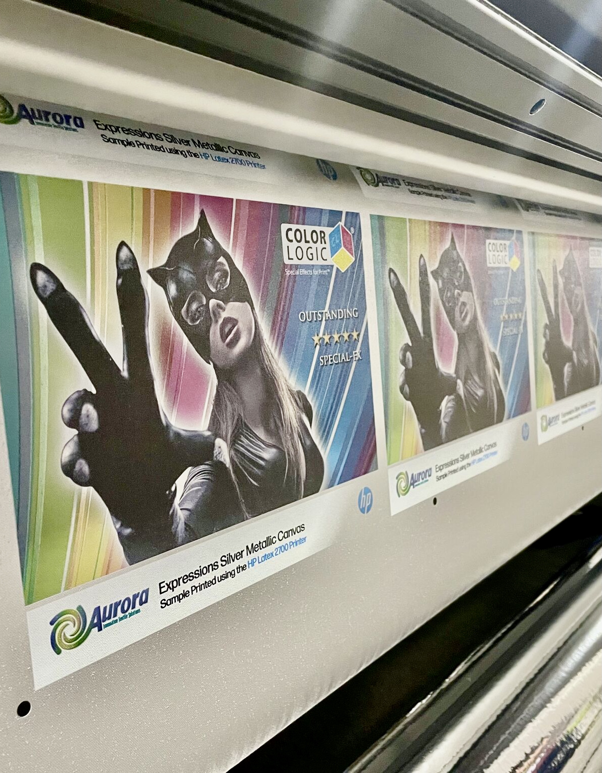 100% woven polyester fabric coating with our silver metallic “Expressions Coating”, that combines the texture of a finely woven fabric with the beauty of a silver metallic finish. It's optimized for printability on today’s latest latex, solvent/eco-solvent, & uv printers.